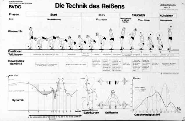 1. Als Reißen wird die erste Teildisziplin des Olympischen Zweikampfes bezeichnet. Bei dieser Schnellkraftübung muss die Hantel ohne Zwischenpausen in einem Zug vom Boden bis über den Kopf gebracht werden. Der Wettbewerber hebt das Gewicht zunächst durch eine Körperstreckung auf, um es über den Kopf zu bringen, darf er wahlweise in die Hocke gehen oder einen Ausfallschritt machen; zuletzt muss er in gerader Haltung und festem Stand die Hantel mit gestreckten Armen auf der Hochstrecke halten.