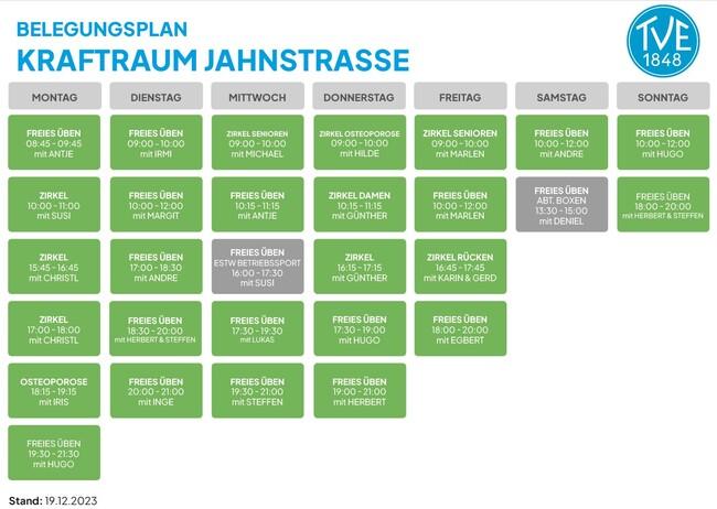 | Freitag | 18:00 – 20:00 | Jahnhalle |