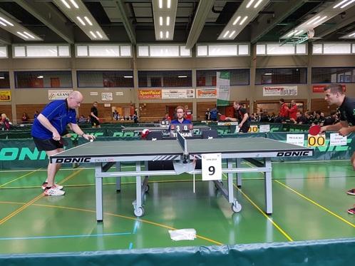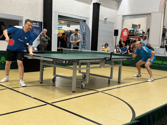 Karsten Reiß und Pavel Kostenko vom TV1848 Erlangen wurden vom TUS Feuchtwangen zu einem Showkampf gegen die Weltklasse Spieler Ruwen Filus und Werner Schlager eingeladen.