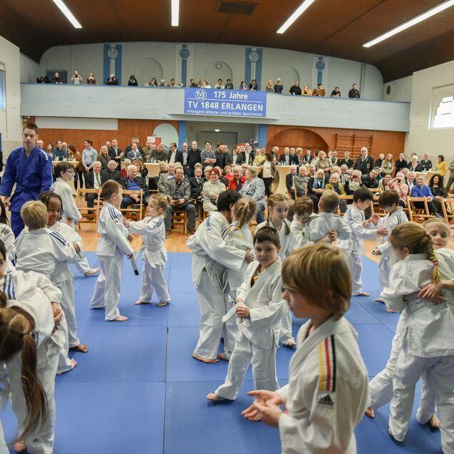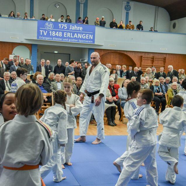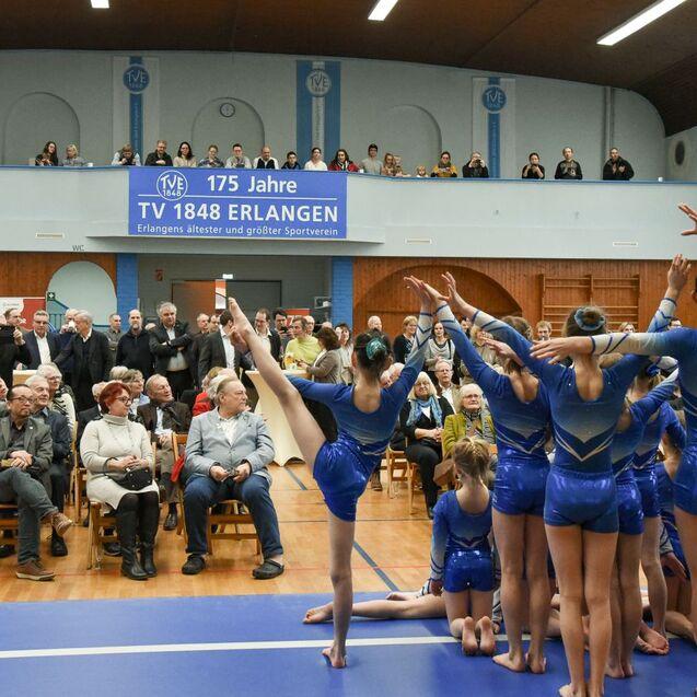 Zwischen den Grußworten zeigten die Leistungsturnerinnen von Anja Färber, die Vision-Tanzgruppe von Ysmael Mejia Antonio und die Judokas von Heiko Koch und Gerd Macholdt ihr großartiges Können.