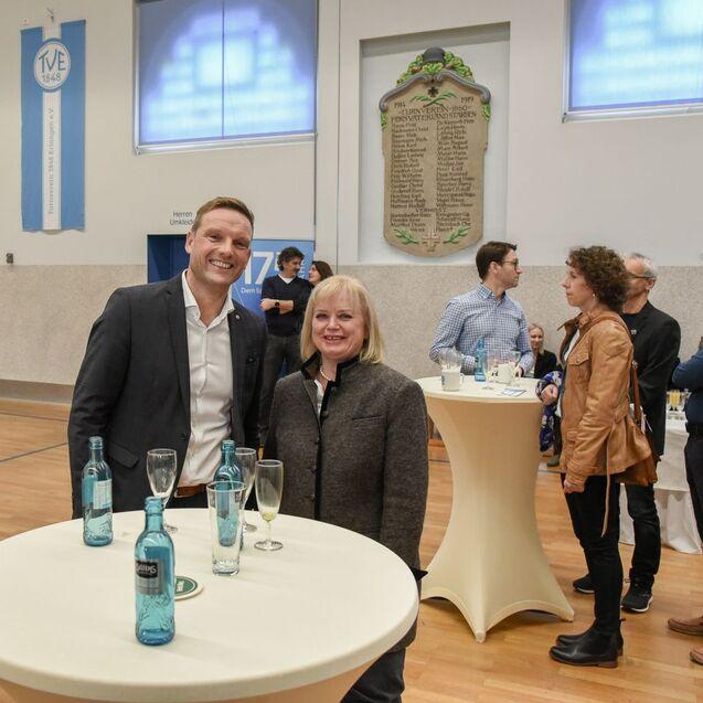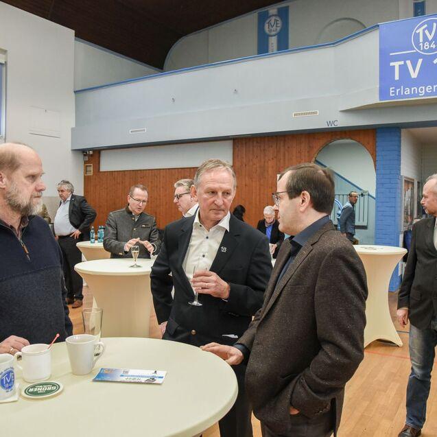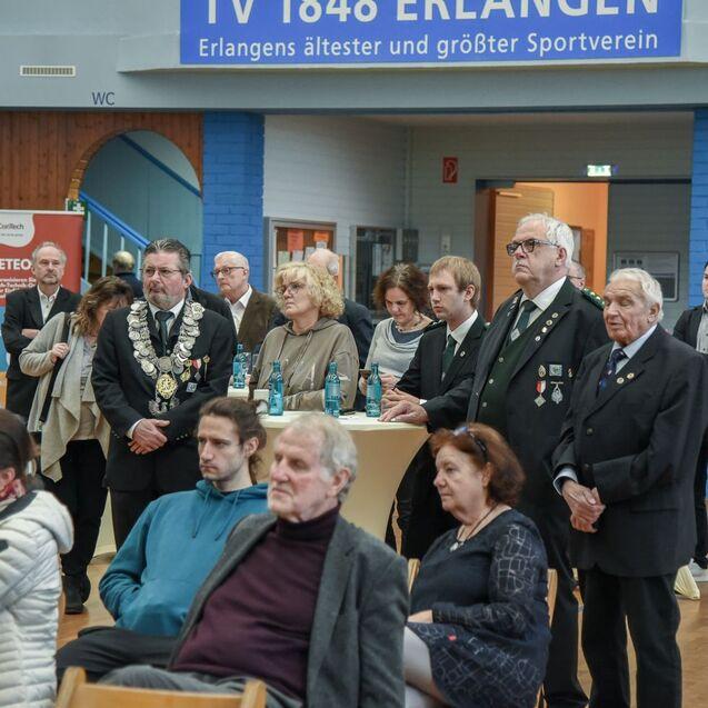 Oberbürgermeister Florian Janik blickte in seinem Grußwort auf die zerstörten Vereine in den von Russland völkerrechtswidrig besetzten Gebieten in der Ukraine. Im Zusammenhang dazu betonte er die großartige gesellschaftliche Bedeutung der Vereine und besonders des Turnvereins für die Erlanger Bevölkerung. Er und Sportbürgermeister Jörg Volleth gratulierten dem Turnverein herzlich zu dessen großem Jubiläum.
