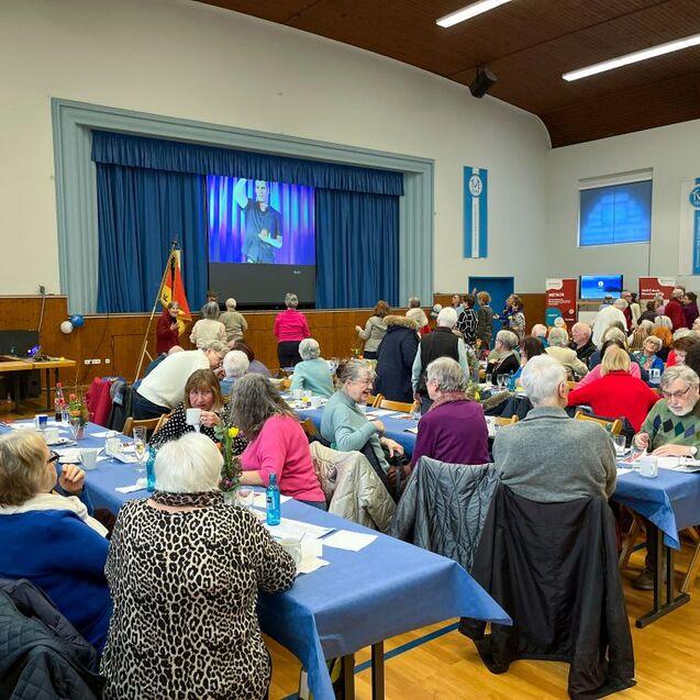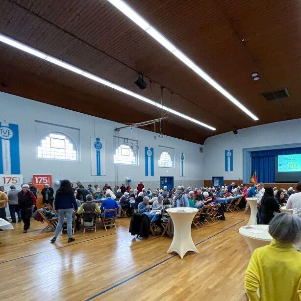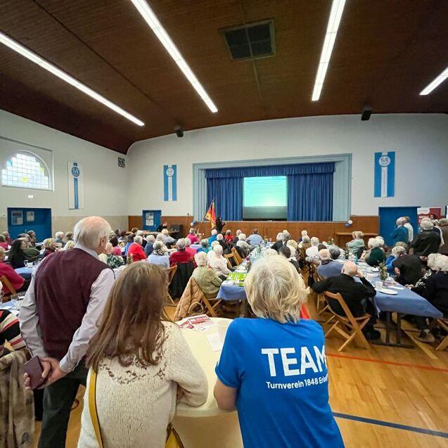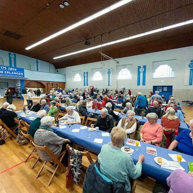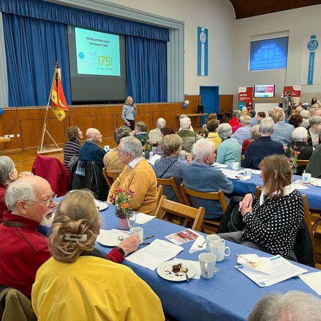 Jeder Monat im Jubiläumsjahr des Turnvereins steht unter einem besonderen Motto – im März dreht sich alles um das Thema „Dein Verein. Deine Generation.“. Passend dazu lud der Verein seine 48er Senioren – ab 68 Jahre – zum Seniorencafé in die Jahnhalle ein. Der Einladung zu Kaffee und Kuchen sind letztlich fast 200 Senioren gefolgt.