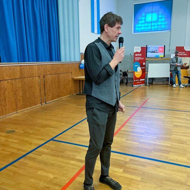 Live zugeschaltet wurde der Kabarettist Franz Bauer aus Cham i.d. Opf.. Der neben einer kleinen Jonglage-Einlage auch noch sein sportliches Programm „Ballmoves“ mitbrachte. Dabei durften dann zu einem späteren Zeitpunkt einige Teilnehmer ihre Koordination und Geschicklichkeit unter Beweis stellen.