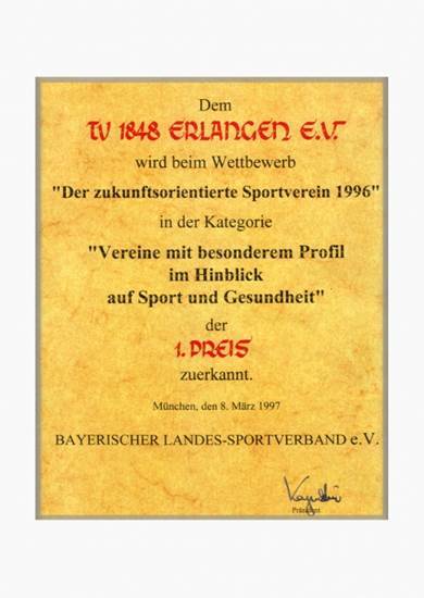 würdigt der BLSV beim Wettbewerb "Der zukunftsorientierte Sportverein" in der Kategorie "Vereine mit besonderem Profil in Hinblick auf Sport und Gesundheit" den TV mit dem 1. Preis.