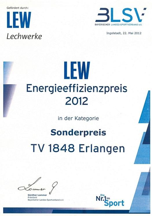 „LEW-Energieeffizienzpreis 2012“ - Sonderpreis für TV 1848