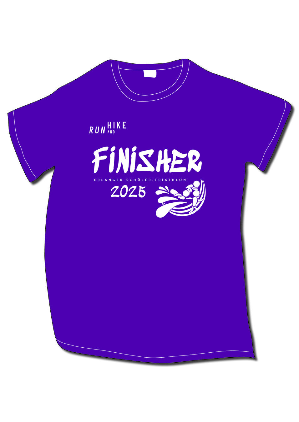 Hinweis: Die Farbe kann beim Original-Shirt (DARK PURPLE) leicht abweichen. Auf der Rückseite des Shirts befinden sich die Logos der Partner des Erlanger Schüler-Triathlons.