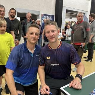 Karsten Reiß und Pavel Kostenko vom TV1848 Erlangen wurden vom TUS Feuchtwangen zu einem Showkampf gegen die Weltklasse Spieler Ruwen Filus und Werner Schlager eingeladen.
