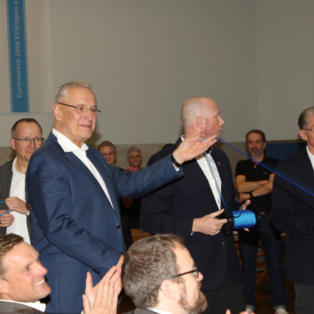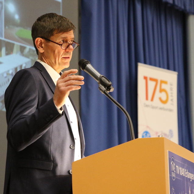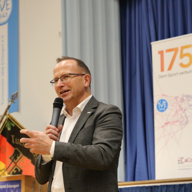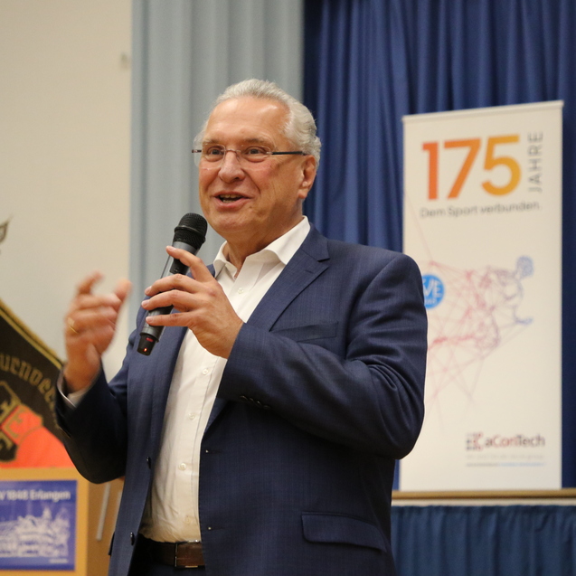 Im Namen des Freistaats gratulierte Innenminister Joachim Herrmann dem Turnverein zum Jubiläum - man sei „stolz in Bayern, dass man den TV 1848 Erlangen hat“. Der Verein habe eine großartige Tradition, weit über das Sportliche hinaus.