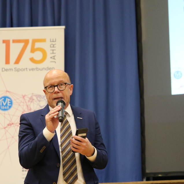 Das erste Wort hatte der 1. Vorsitzende und Gastgeber Jörg Bergner. In seiner Festrede ging er auf die letzten 25 Jahre der Vereinsgeschichte ein. Seit dem Jubiläum 1998 machte der TV 1848 eine beeindruckende Entwicklung. So stieg die Mitgliederzahl von damals 5.000 Mitglieder auf heute fast 7.000. Die damalige Aufbruchstimmung, der Bau des TV-Vital und die gezielten Schritte in der Professionalisierung wirkten wie ein Booster für die Vereinsentwicklung. Aufkommende Widerstände unter den Mitgliedern oder durch externe Stellen, wurden mit Zuversicht und Durchhaltevermögen überwunden – getreu dem Sprichwort: „Alles ist schwierig, bevor es leicht ist“.