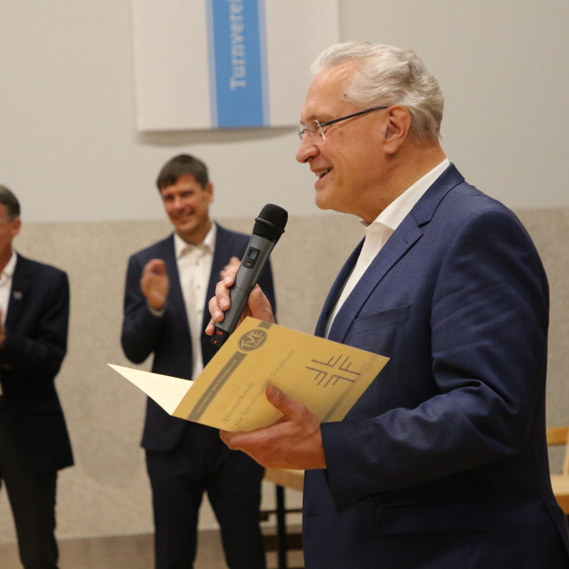 Das Jubiläumsjahr neigt sich dem Ende zu und man könnte meinen, der Turnverein hat sich das „Beste“ für den Schluss aufgehoben. Am 10. November lud der Jubilar seine Partner, Freunde und Unterstützer aus der (Sport-)Politik, der Vereins- und Verbandswelt, der Wirtschaft und natürlich seine Ehrenmitglieder zur Festveranstaltung in die Jahnhalle ein. Zu den Ehrengästen gehörten u.a. Oberbürgermeister Dr. Florian Janik, Boris Schmidt (Vorsitzender des Freiburger Kreises), Jörg Ammon (BLSV-Präsident) und der frisch wieder berufene Innenminister Joachim Herrmann.