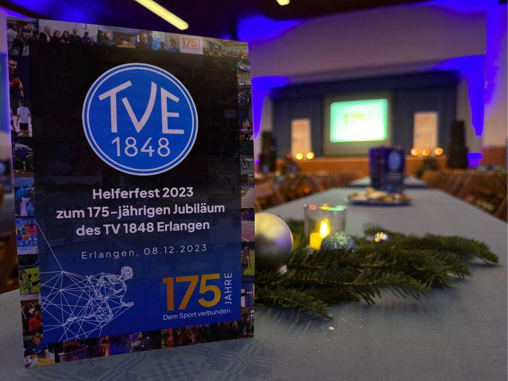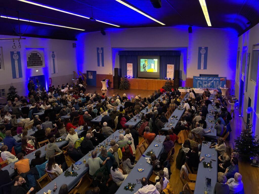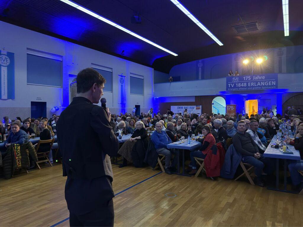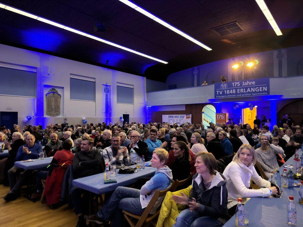 Mit einer riesigen Party beendete der TV 1848 Erlangen die vielen Veranstaltungen und Aktionen im Jubiläumsjahr. Über 300 Personen versammelten sich am 8. Dezember 2023 in der festlich geschmückten Jahnhalle, wo ein kurzweiliges und buntes Rahmenprogramm auf sie wartete. Die Gäste setzten sich aus den unzähligen Helferinnen und Helfern des Erlanger Triathlons, den Helferinnen und Helfern der Jubiläumsveranstaltungen des Hauptvereins, den hauptamtlichen Mitarbeitenden und den Übungsleiterinnen und Übungsleitern aus dem Freizeitsport zusammen.