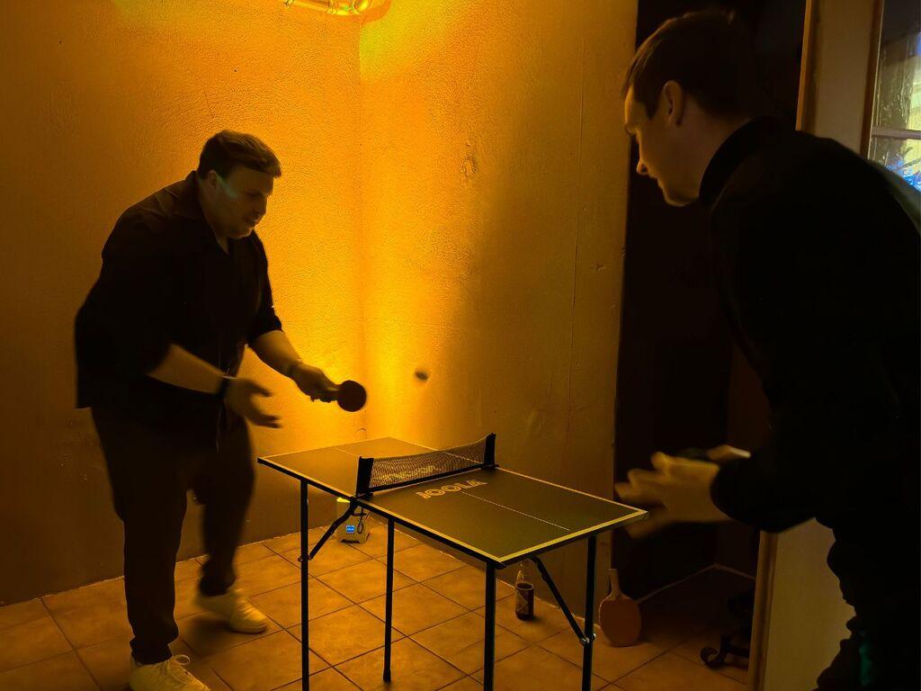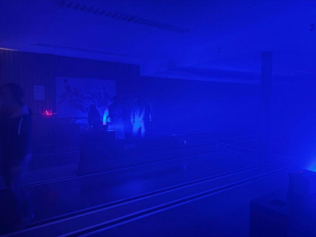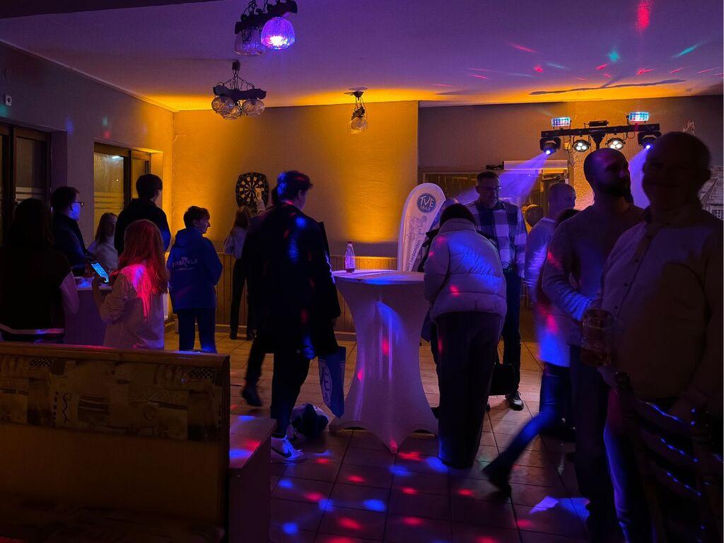 Nicht nur in der Haupthalle war durch die Musik des DJs mit Tanzmöglichkeit etwas geboten, auch die leerstehende Gaststätte und Kegelbahn wurde bestens genutzt: Als Event-Area konnte man in den Räumlichkeiten Darts, Kicker oder auch Mini-Tischtennis spielen, beim Space-Kegeln mit Nebel und Lasershow konnte man sein Können unter Beweis stellen. Wer Lust hatte, konnte bei der Live-Aufzeichnung von "ACHTZEHNACHTUNDVIERZIG - Der TV Erlangen Podcast." unmittelbar von der Feier berichten - höre unbedingt in Folge 12 rein!